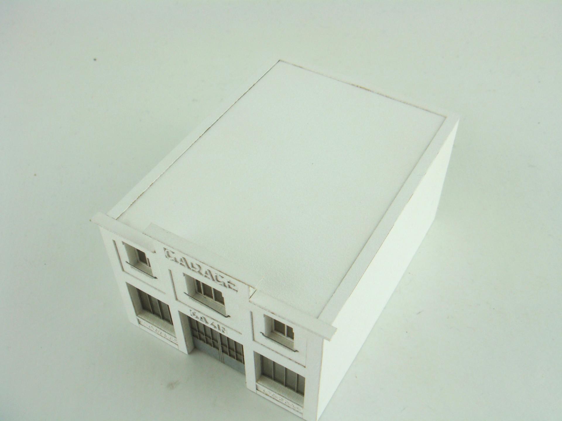 Voilà un superbe garage, typique des années 50 ! Simple à monter, il trouvera sa place dans un village comme un grande ville. Un kit idéal pour le N'istes!